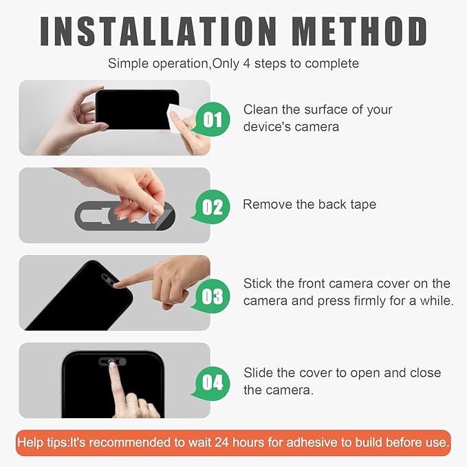 - Easy installation: Even new users can quickly complete the installation. After wiping the lens clean, align the front lens cover with the lens position, gently press the edge, and fit it. Slide the lens cover again to ensure that it does not affect the normal operation of the phoneβs front camera.