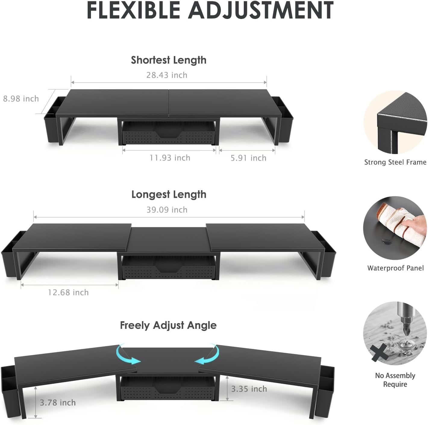 - 【Unlock Extra Space】Raise your monitor height with this monitor riser to free up space underneath. Store your keyboard, mouse, files, printer, gaming items, etc. neatly. Fits perfectly in any home, office, or dorm. Maximize desktop space and master desk organization