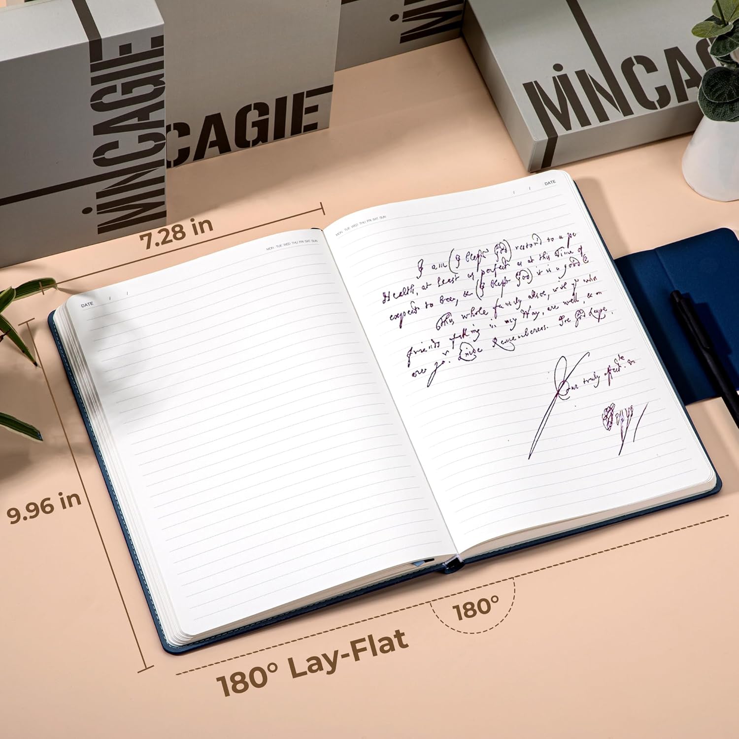 - Sleek Functionality: A magnetic square closure replaces traditional straps, ensuring secure closure and doubling as a hidden pen loop. Perfect for on-the-go use with its A5 journal for men and 180° flat-lay design.