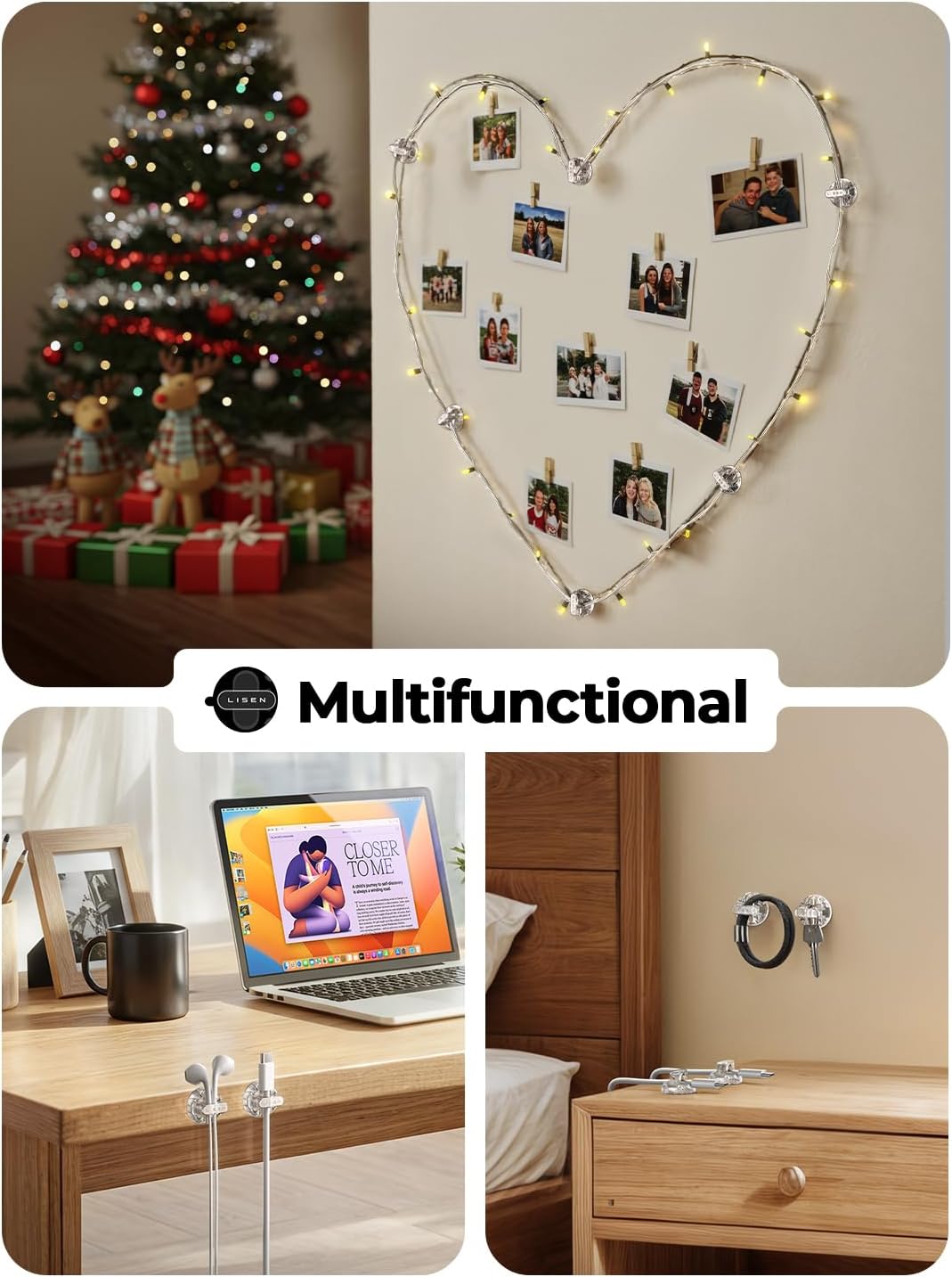 - Compact, Tidy Up Any Space: Measuring just 0.85" x 0.85" x 0.55" and weighing only 3g, LISEN cold holder is perfect for narrow spaces. With 8 individual clips included, you can neatly arrange cables on desks, nightstands, walls, or even in your car. This versatile organizer is a must-have accessory for keeping your space clean and clutter-free