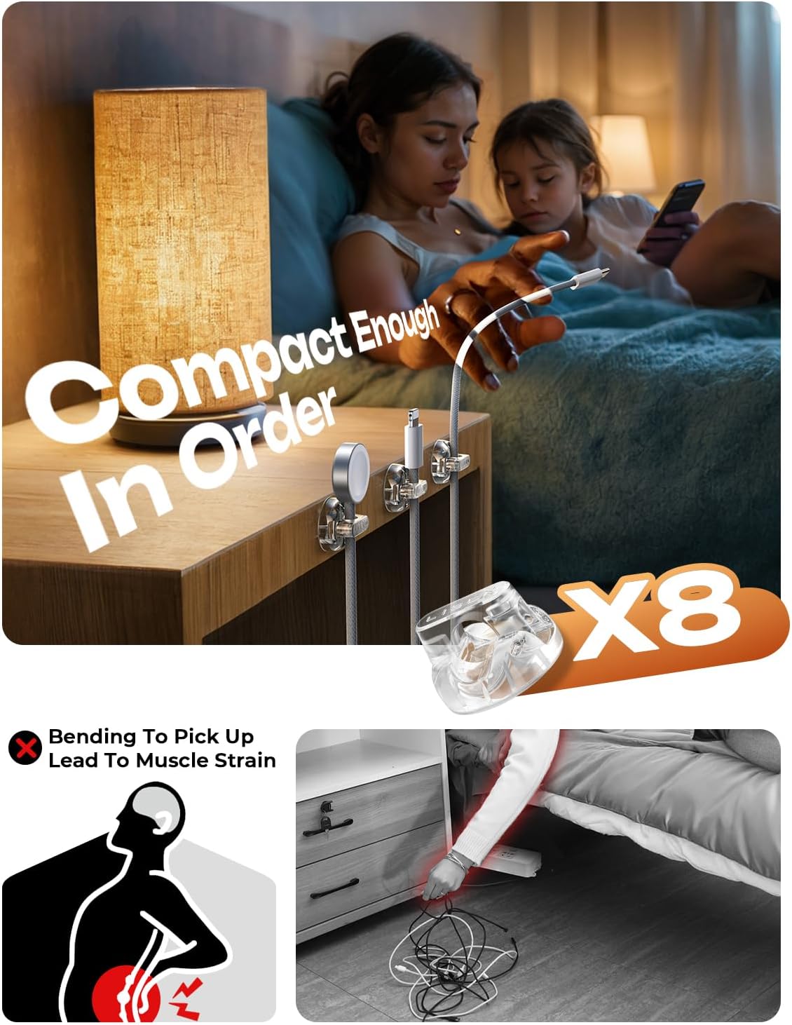 - Perfect Slot Size for Wide Cable Compatibility: With a 0.27-inch (7mm) slot diameter, this versatile cord holders for nightstand, also referred to as desk cable clips, works perfectly with phone chargers, USB cords, HDMI cables, power cords, and slim cables like the iPhone silicone charging cord. Enjoy smooth cable pulling and a clutter-free space