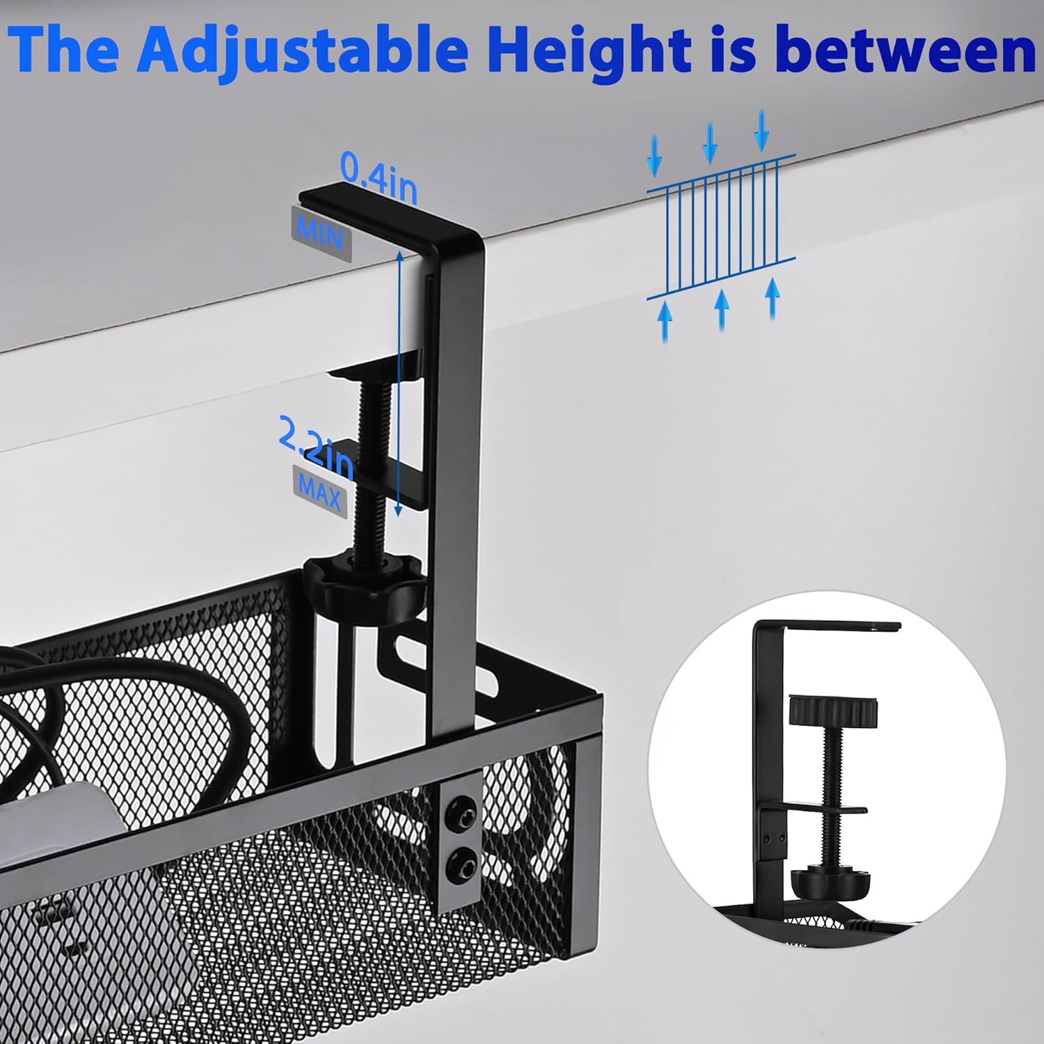 - No Drilling Required – Easy and Damage-Free Installation - The cable management tray features an innovative no-drill design with sturdy clamps, allowing for effortless attachment under your desk. It fits desks within 0.4" to 2.2" thick, so you can securely install it without the need for tools or causing any damage to your desk surface. It’s the perfect under-desk cable management solution for anyone looking to organize their workspace quickly and efficiently.