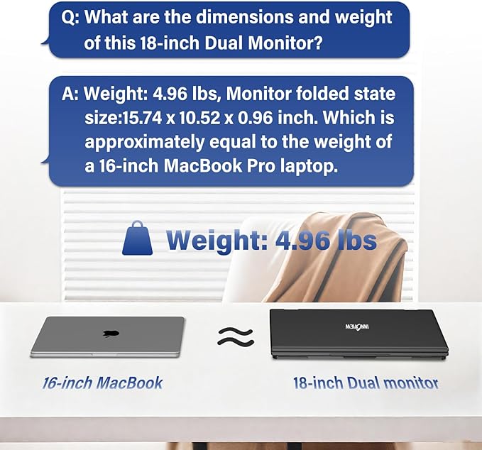 - 【18" Large Dual Screen + Driver-free Design】 Adopting the upper and lower dual screen layout, the 18-inch large screen provides a wide field of view, making it easy to achieve split-screen office or entertainment. The body adopts a lightweight folding structure, which provides stable support when unfolded, and the thickness is only 0.96 inches when folded, which is convenient for storage and carrying.