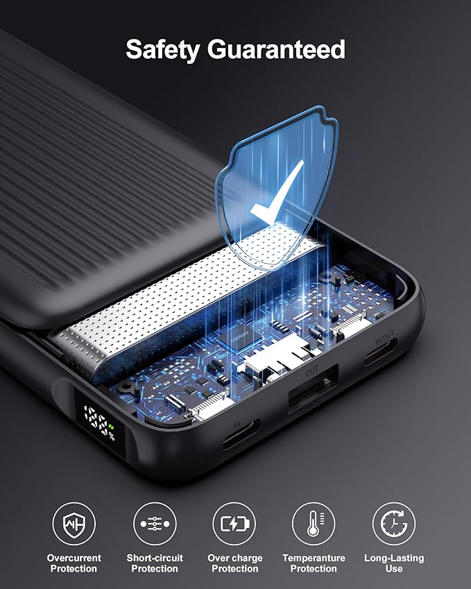 - 【10,000mAh Reliable Power + 1% Precision LED】Powers 2-3 full phone charges or weeks of AirPods use. A+ lithium polymer battery pack (500+ cycles) with real-time LED % display—no guesswork! Compatible with all mobile phones and tablets, and also compatible with AirPods, Bluetooth headphones, fitness trackers, smart watches and other small devices