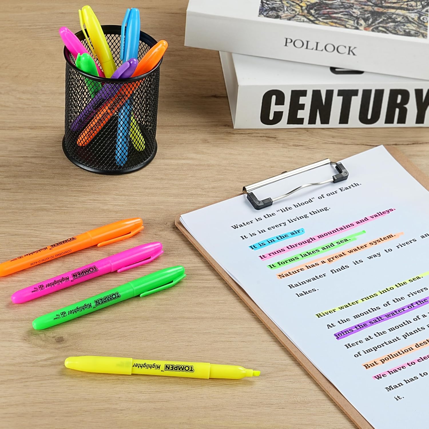- Bulk Set of 48 Highlighters in 6 Bright Colors:Includes 8 pens each in fluorescent yellow, pink, blue, green, orange, and purple. Ideal for color coding, note-taking, and organizing—great for classrooms, offices, and home use
