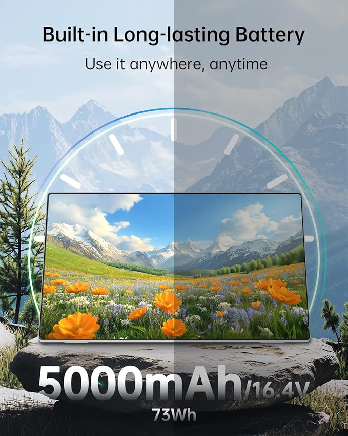 - Flexible Screen & Long Battery Life: The fully adjustable touch screen of this smart portable mobile TV enables you to watch it in a landscape mode or in a portrait mode. 5000mAh battery makes sure you could fully enjoy the movies, shows, games or works without being tied to an outlet, perfect for home or outdoor gatherings
