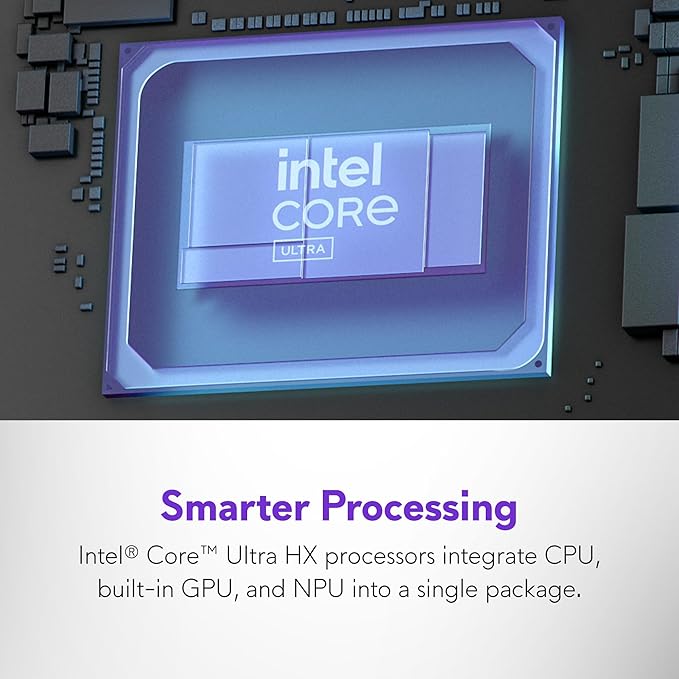 - Intelligent processing: Intel Core Ultra HX processors integrate CPU, built-in GPU, and NPU into a single package designed for AI acceleration and balanced performance across your favorite things to do.