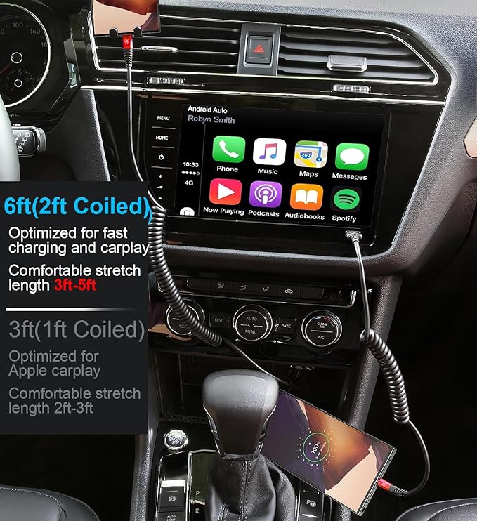 - USB C to USB C Cable Fast Charging for Car: Coiled type c car charger with spring shape design, portable and not tangled. It can well save the use of space in the car and say goodbye to the hassle of data cable clutter and tangles.