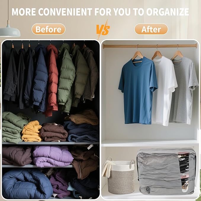 - 🏠Multi Scenario Applicability: Our Large vacuum bags Ideal for seasonal clothing, bedding, quilts, blankets, toys or household items,Extremely versatile for home storage needs,suit for closet shelves, wardrobe, attic, apartment, basement, garage, RV, camping, college, laundry, bedroom, cabinet etc. and easy to fold for storage when not in use.