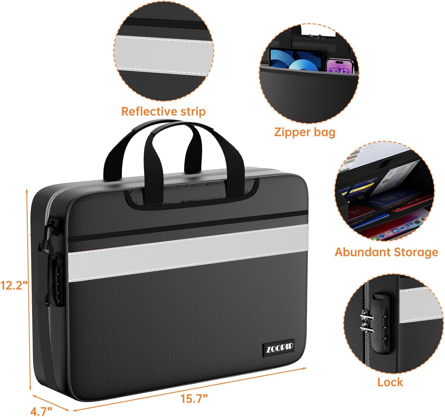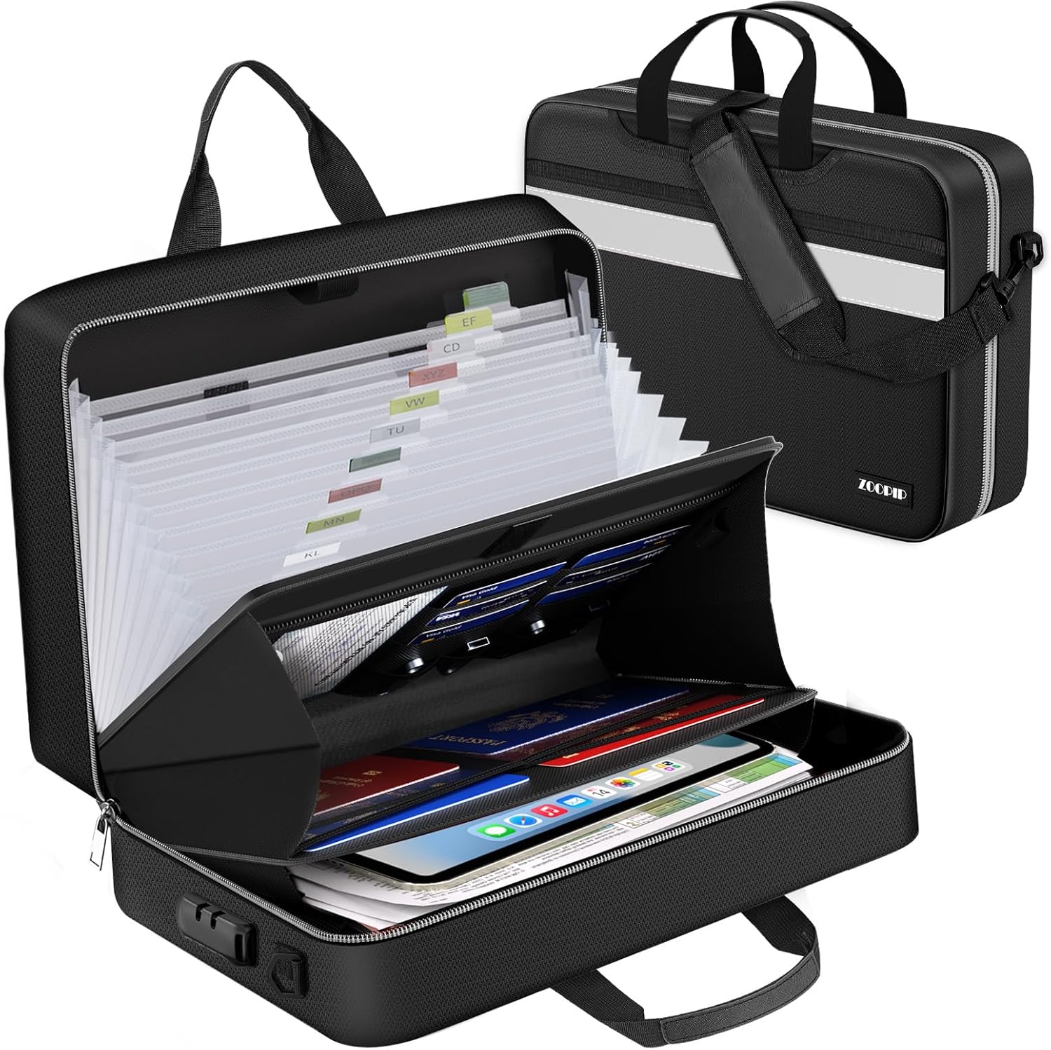 - 【Large File Folder】Suitable size: 16.1"×4.3"×12.6".Comfortable handle and shoulder strap,so that you travel and work on the way to more calm,chic and generous!Lock Folder Organizer comes with a three-digit combination lock.You can place any personal items without worrying that your important files will be viewed or that valuables such as jewelry will be lost.It's also very easy to set the new password and the details page has details on how to set a new password.(※ Old password: 000)