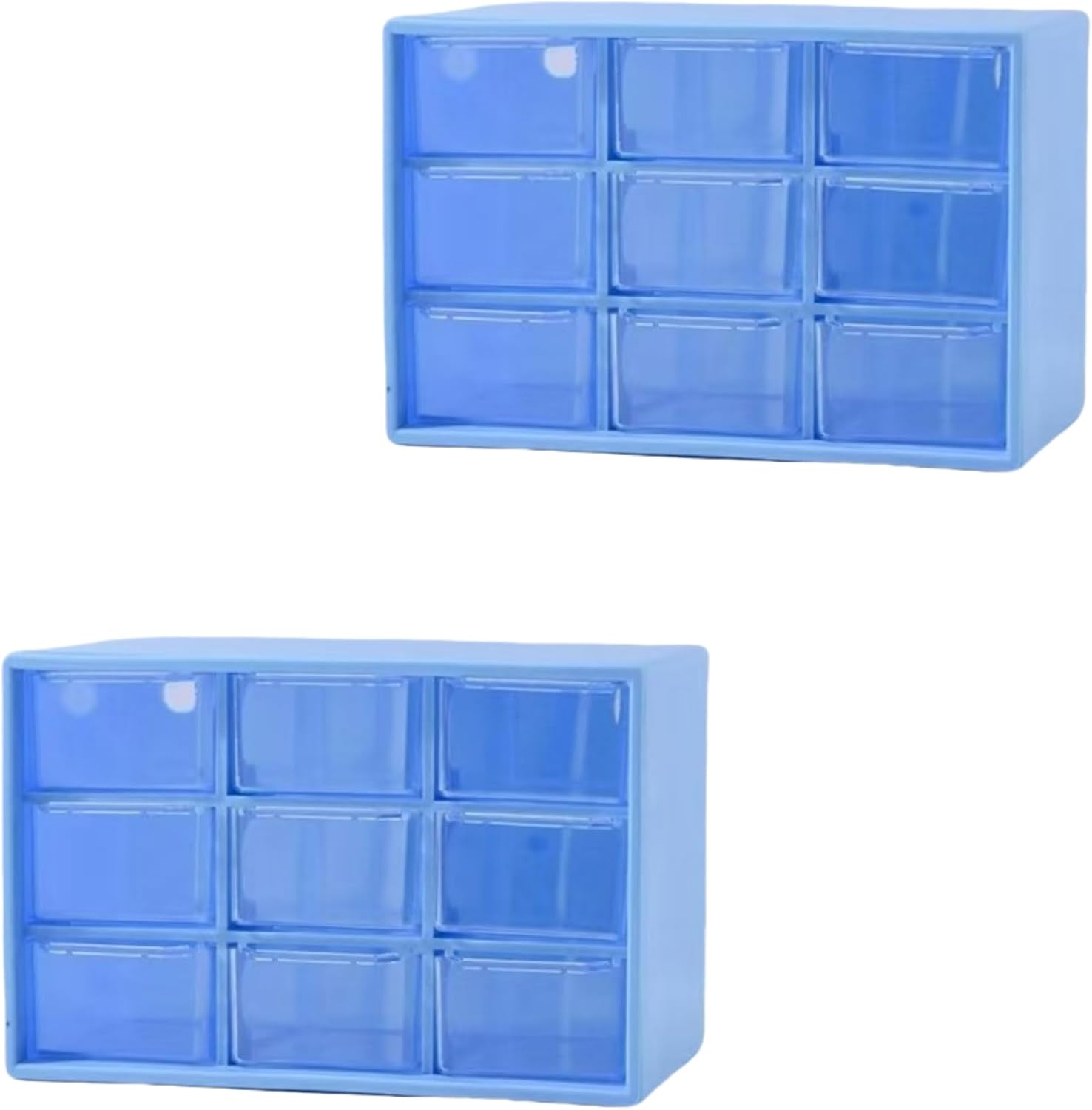 Feadily 2PCS Small Drawer Organizer for Desk, Desktop Drawer Organizer with 9 Clear Drawers, Plastic Desktop Storage Drawers 7.1 Inch x 3 .9 Inch x 4.7 Inch, Blue