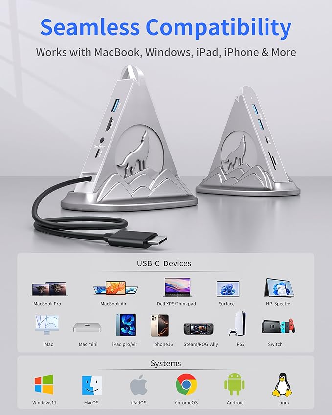 - Invest in Your Productivity, What’s Included & Our Promise: Joyreken USB-C Hub with a mountain-like base stand, a helpful Welcome Guide, a 12-month worry-free warranty, and friendly, responsive customer support. Buy with peace of mind!