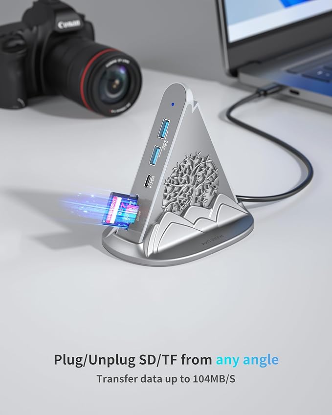 - High-Speed SD/TF Card Reader: Designed for photographers, drone pilots, and surveillance professionals. Quickly transfer footage from your camera, drone, or dashcam with this USB-C SD and microSD card reader(supports up to 2TB). Enjoy 104MB/s speeds for seamless workflow and instant access to your media.
