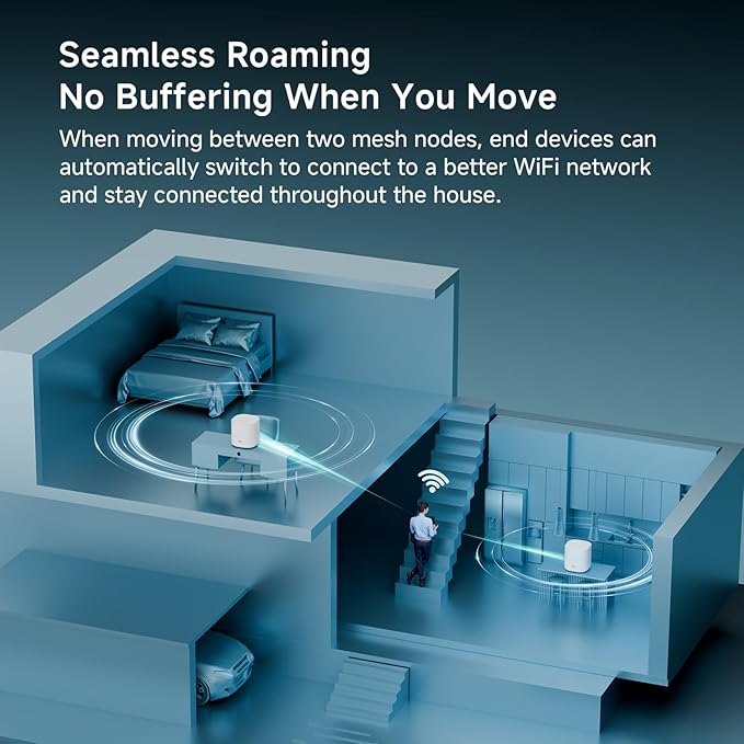 - ๐๐๐๐ฆ๐ฅ๐๐ฌ๐ฌ ๐๐ก๐จ๐ฅ๐-๐๐จ๐ฆ๐ ๐๐จ๐ฏ๐๐ซ๐๐ ๐: Two units cover up to 4,500 sq. ft. with ultra-stable WiFi. Add satellite units to eliminate dead zones and enjoy smooth roaming between rooms, floors, or outdoor spaces. A better solution than standard WiFi boosters and extenders