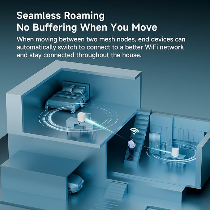 - ๐๐๐๐ฆ๐ฅ๐๐ฌ๐ฌ ๐๐ก๐จ๐ฅ๐-๐๐จ๐ฆ๐ ๐๐จ๐ฏ๐๐ซ๐๐ ๐: Two units cover up to 4,000 sq. ft. with ultra-stable WiFi. Add satellite units to eliminate dead zones and enjoy smooth roaming between rooms, floors, or outdoor spaces. A better solution than standard WiFi boosters and extenders