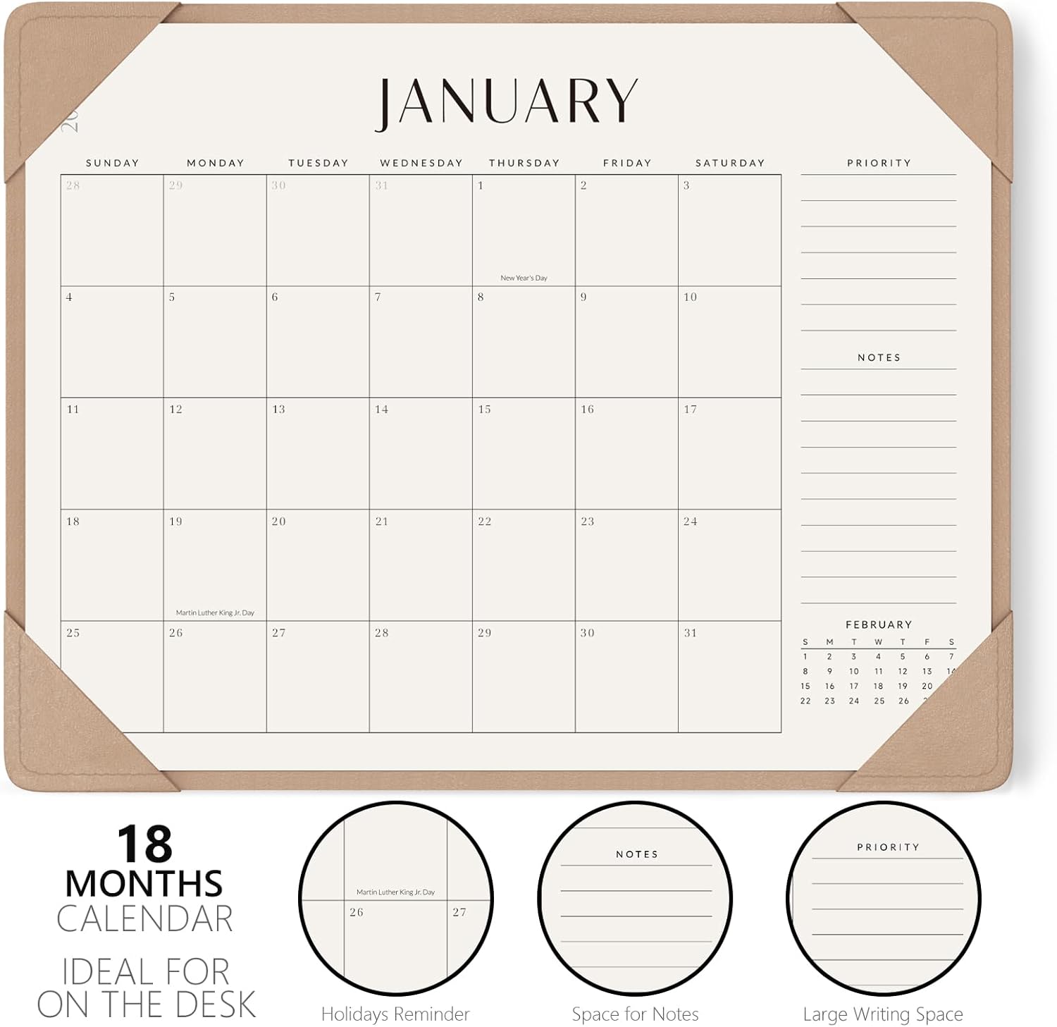 - ENHANCE YOUR EFFICIENCY: This large desk calendar 2025-2026 (22" x 17") is the ideal size to place it on your desk. It's a useful tool for seeing all of holidays, birthdays, appointments, deadlines, and staying on top of your important arrangements