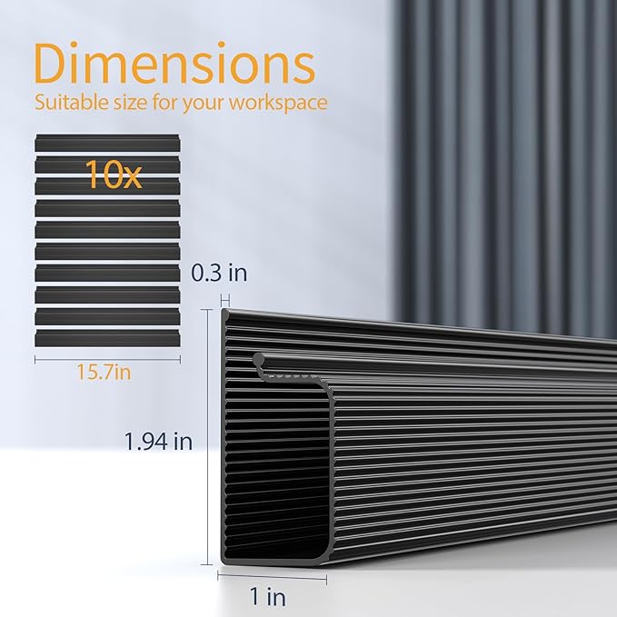 - Generous Capacity & Reliable Safety: The under deskcord management are large enough to accommodate at least 10 cables, meeting most wire management under the desk organizer needs. The use of PVC plastic material ensures excellent safety performance. Our desk cable management does not produce open flame at high temperatures, only presenting a charred surface, which greatly enhances the safety features of our cable raceway.