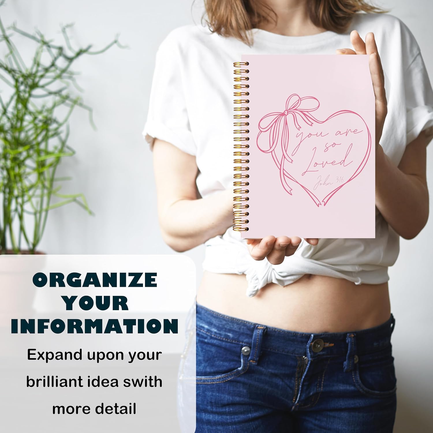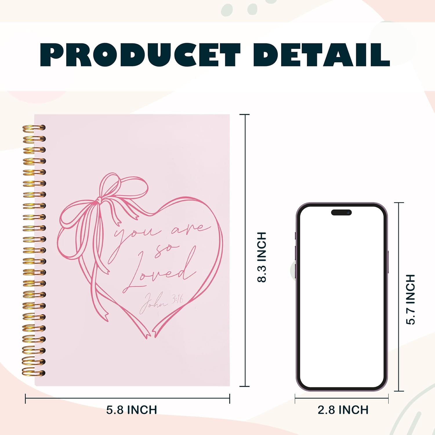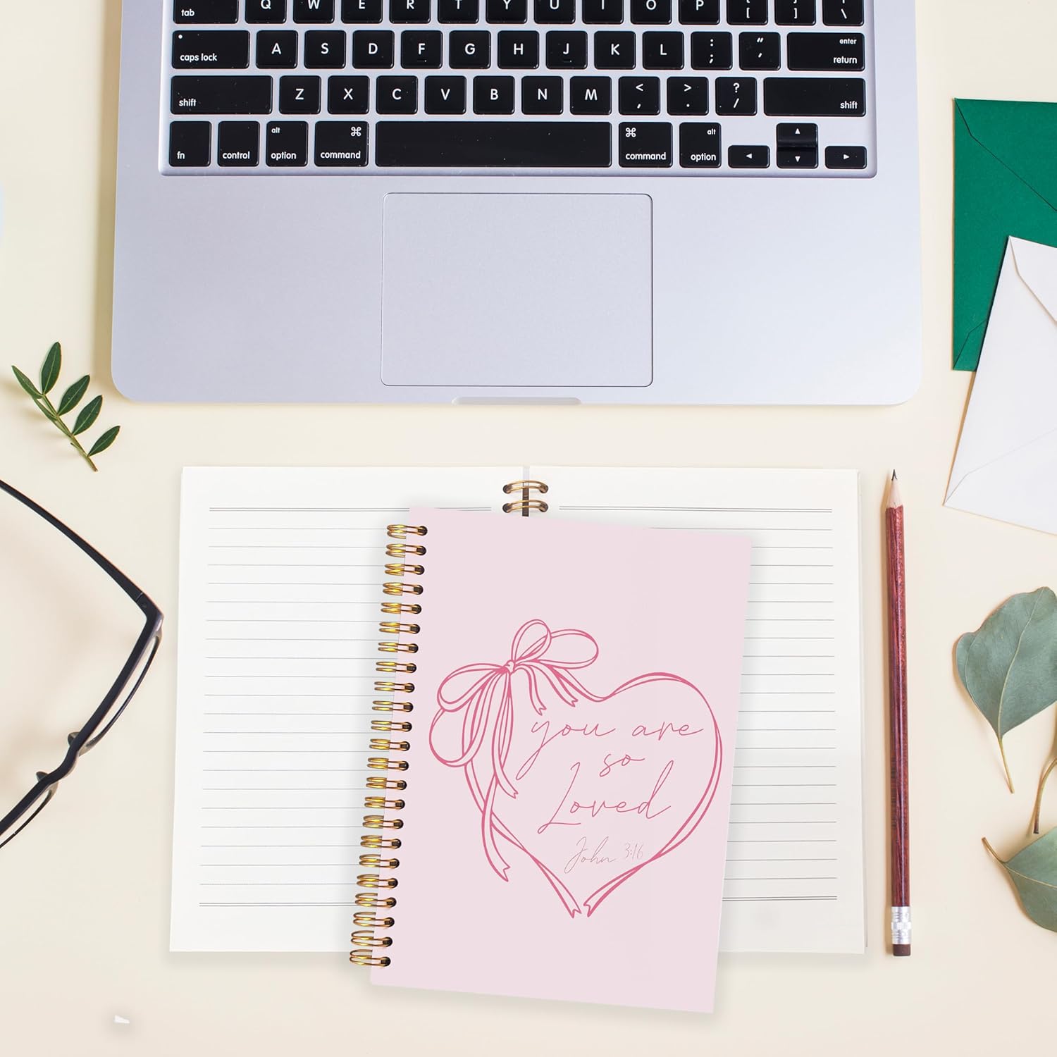 BearCake Coquette Pink Bow Christian Notebook Journal, Christian Gifts for Women, You Are So Loved Bible Journaling Prayer for Women, Preppy Aesthetic Hardcover Spiral Notebook 5.5x8.3