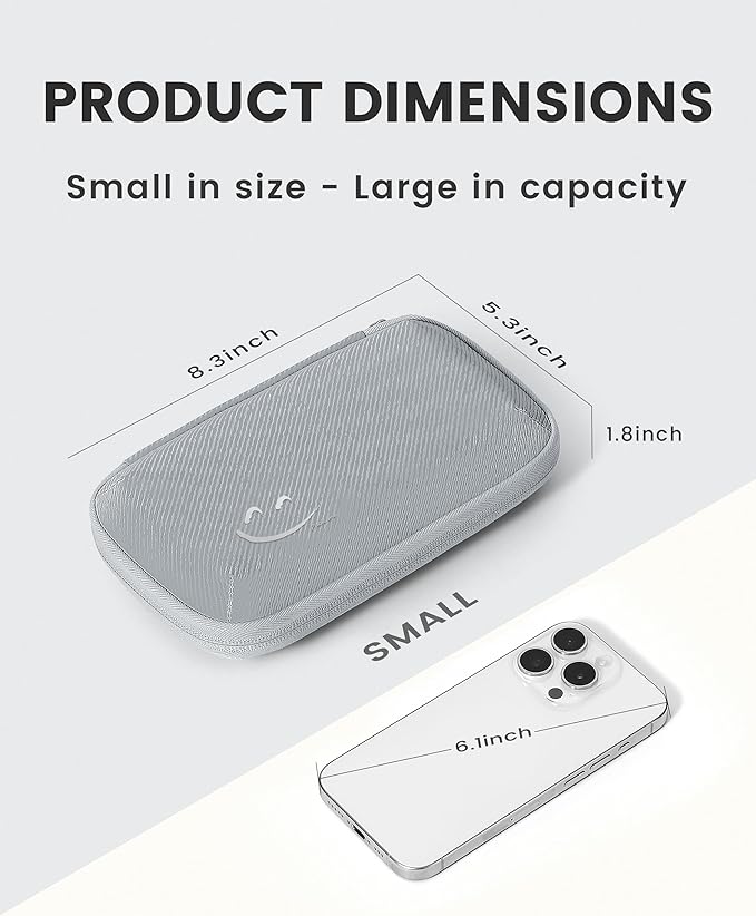 - Portable and practical. This small travel cord organizer features a smooth - zip closure and an ergonomic hand strap for easy carrying. Ideal for work, travel, or daily use, it keeps your devices and accessories organized on the go