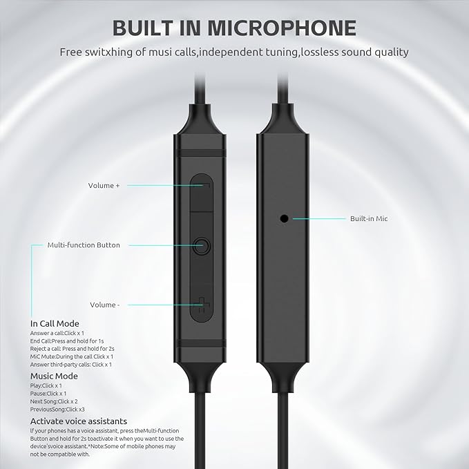 - BUILT-IN HD MIC & BUTTON CONTROLS:Crystal-clear calls with omnidirectional microphone (SNR >58dB). Button Controls allows volume adjustment/music control/call management