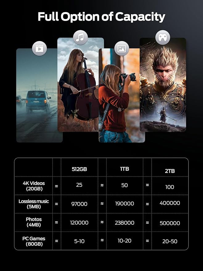 - 【TLC Reliable Transfer】When continuously transferring large files (>100GB) or playing games, TLC can stably and continuously transfer content, maintaining speed throughout the process and ensuring security. This makes you more comfortable and passionate about PSSD