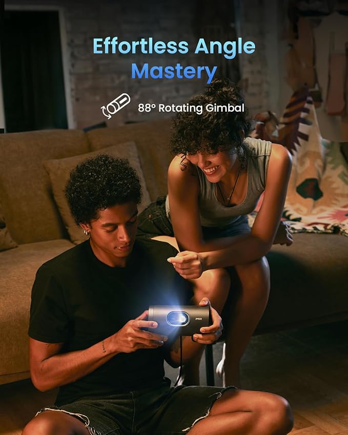 - ๐๏ธ๐ ๐ซ๐๐ ๐๐ง๐ ๐ฅ๐, ๐๐๐ฌ๐ฒ ๐๐จ๐ง๐ญ๐ซ๐จ๐ฅ: Project effortlessly from wall to ceiling. The 88ยฐ Rotating Gimbal and Flexismart System automatically optimize the image, ideal for movie nights in bed or couch relaxation.