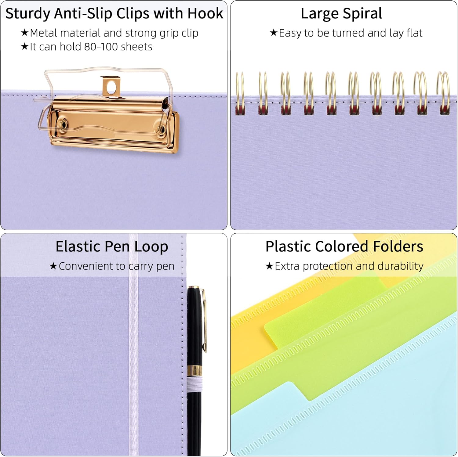 - 【Versatile Organizer】The spiral clipboard folio with folders is a versatile tool for students, teacher, nurse, professionals, artists, travelers, business, school, and anyone who needs to stay organized. Perfect for storing notes, documents, sketches, and more. It is a great gift for friends, family, and loved ones on birthdays, the school year, Christmas, Thanksgiving, or New Year,etc.