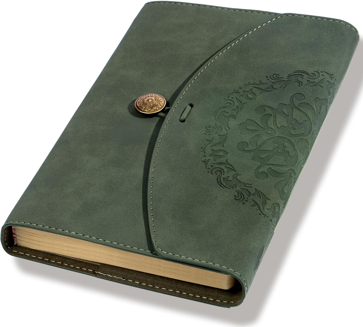 - VINTAGE JOURNAL: The journal cover is made of high quality vegan-friendly leather, which has a soft, suede-like feel, vintage and charming. Exquisite button and string can keep junk journal better closed, stylish embossing add vintage vibe to writing and diary!