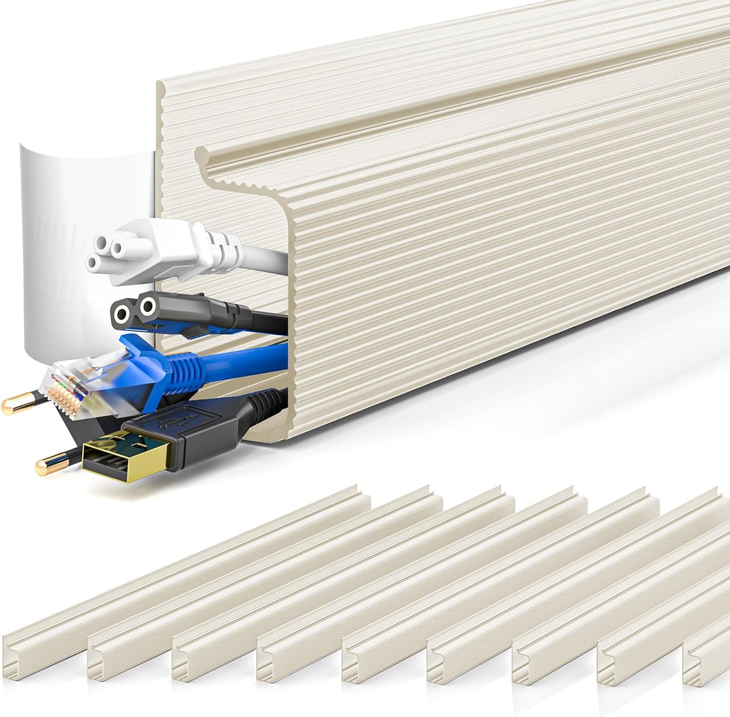 - Quick Installation, Damage-Free Removal - Each wire organizers for cords comes with pre-applied adhesive tape, allowing you to skip the complex installation process. Simply peel off the protective film and adhere the desk cord organizer to any smooth surface for a robust installation. With a little heat from a hairdryer, you can easily remove the cable raceway without tools, leaving no residue and preserving the condition of your furniture and walls