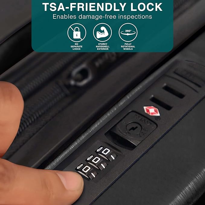- Travel Luggage with Spinner Wheels: Our 28 inch luggage with spinner wheels provides smooth 360° movement. This rolling suitcase, hardshell luggage includes a telescoping handle, stainless steel name tag, and TSA lock.