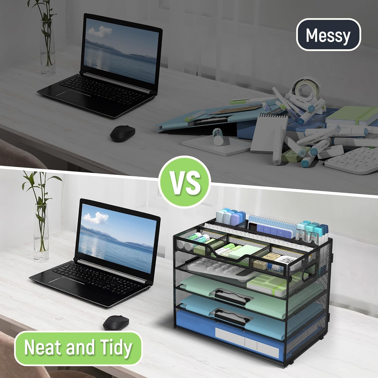 - Low-Maintenance, Easy to Clean-The smooth powder-coated surface of this professional office desk organizer resists dust and stainsβsimply wipe with a damp cloth for spotless upkeep. Ideal for busy offices, classrooms, or home workspaces where desk organization and hygiene matter most. The perfect paper organizer for desk among your essential office supplies