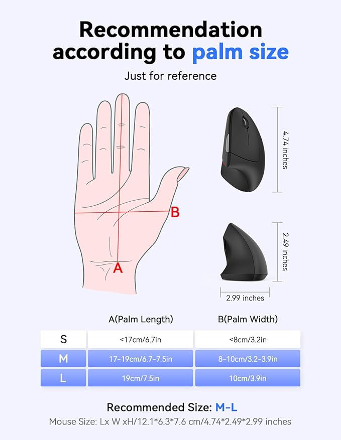 - EASY TO USE: Just plug the 2.4G receiver for 49ft connection distance.The vertical mice requires an available USB-A port. An adapter may be needed for computers with only USB-C ports.