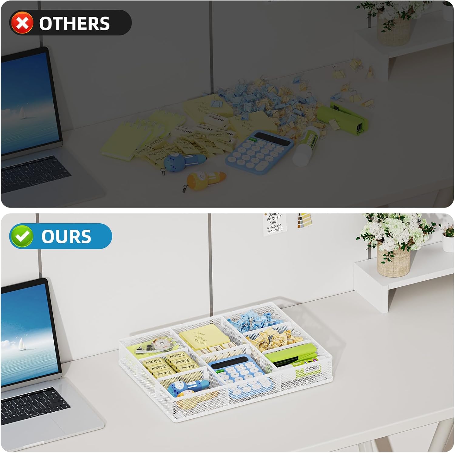 - Sturdy and Durable: Made of strong wire mesh with a powder-coated finish that is smooth, corrosion-resistant, and built to last. Non-slip feet keep the organizer stable and in place.This practical desk drawer organizer also makes a perfect gift for your family and friends.