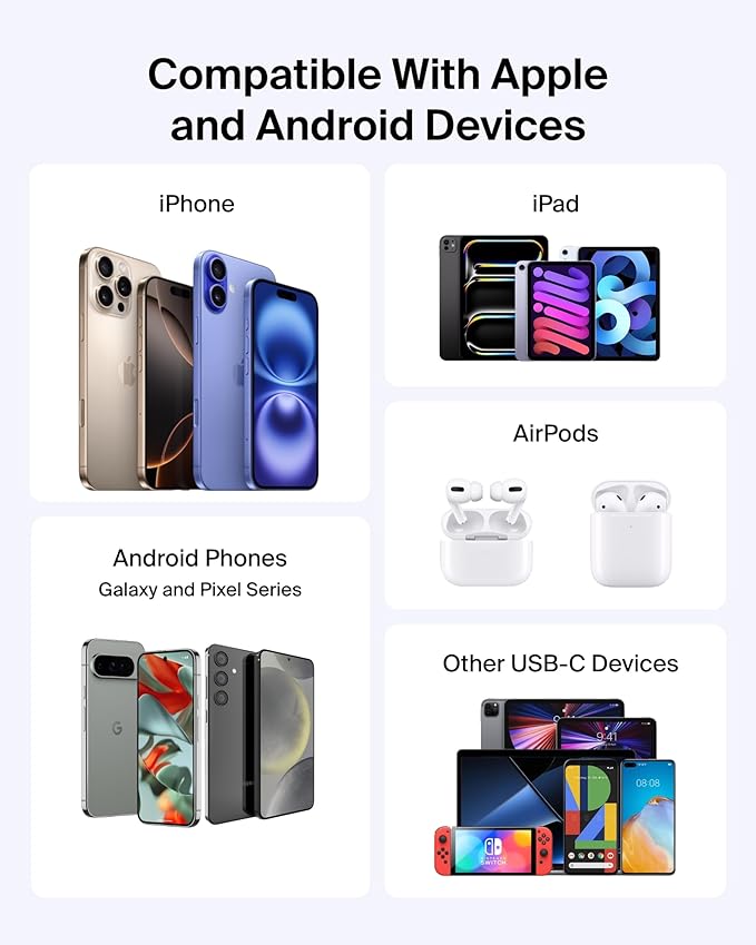 - FAST CHARGING FOR YOUR SMARTPHONE OR TABLET ON THE GO: This versatile power bank provides a 20W max output to recharge your iPhone, Galaxy, iPad, and more at home or on the go. Charge an iPhone 16 Pro from 0-50% in as little as 25 minutes.