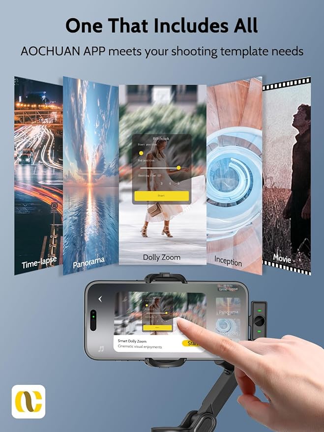 - 【Multifunctional APP】This gimbal stabilizer for iphone needs to be connected to the AOCHUAN APP, providing multiple shooting modes such as panorama, live broadcast, time-lapse shooting and motion time-lapse shooting. It supports gesture control and AI intelligent tracking mode, with face tracking and object tracking.