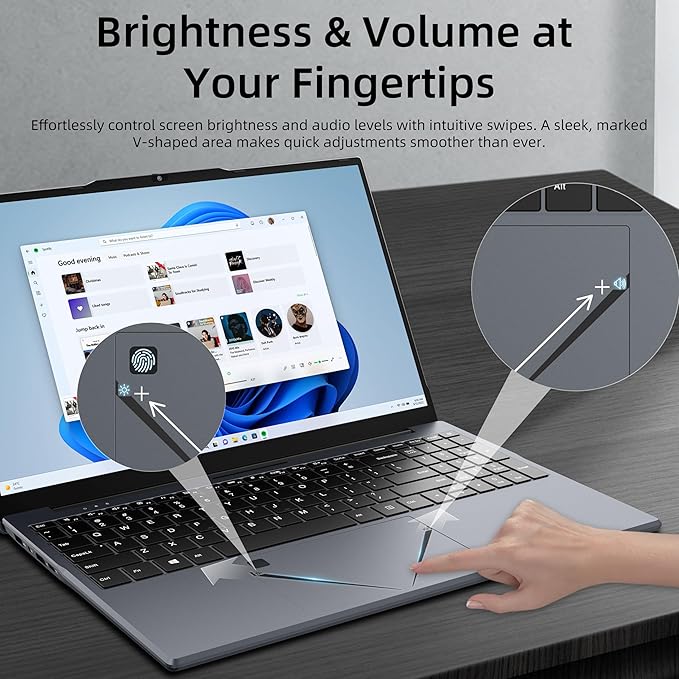 - Smart V-Shaped Touchpad Controls: Boost productivity with the innovative V-shaped touchpad - adjust brightness (left side) and volume (right side) without interrupting your workflow. A unique feature that sets this Ryzen 5 laptop apart