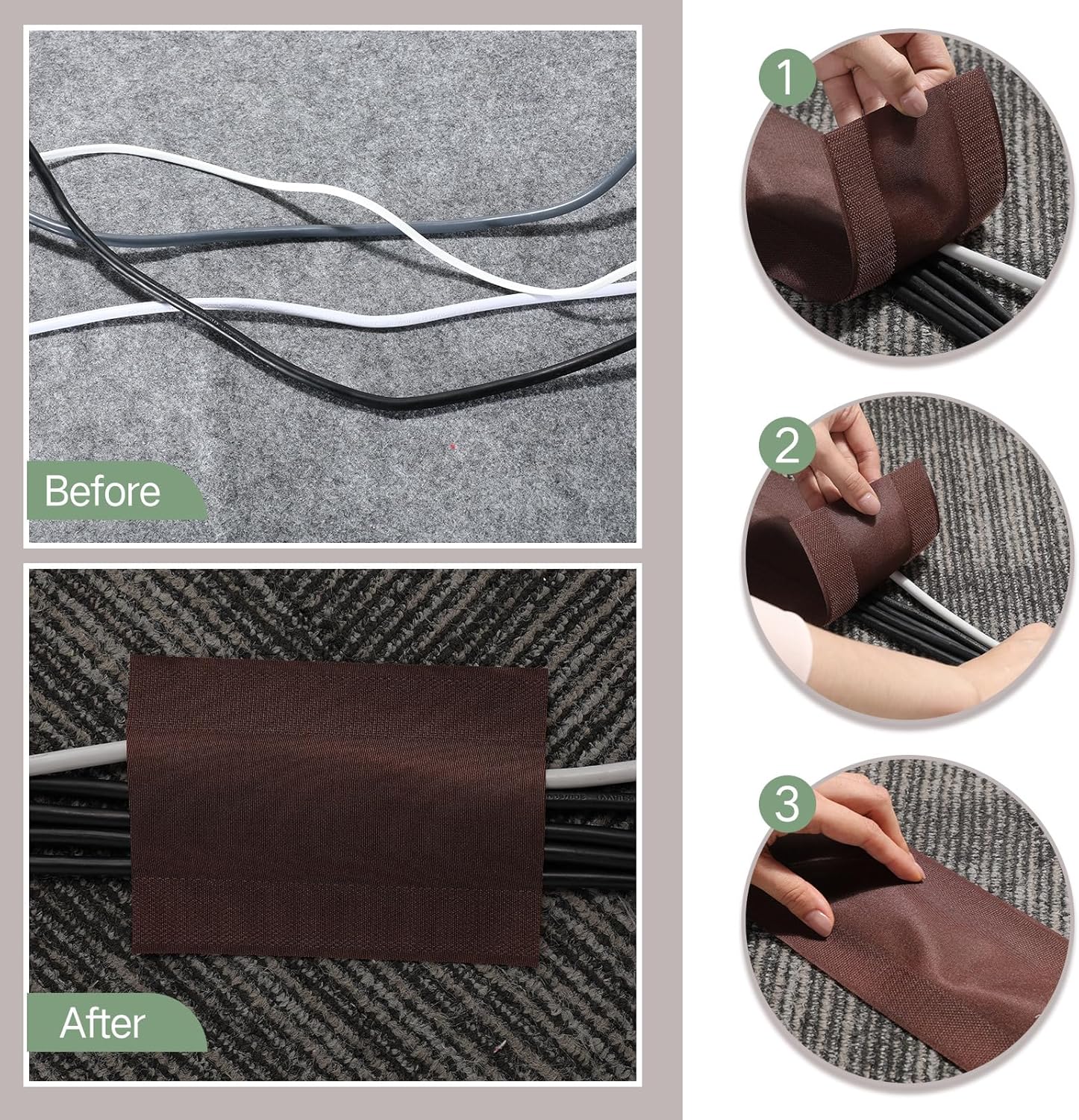 - Easy to use: the floor strip is designed in hook and loop design, grips well and easy for cutting to the length that you require; Pinch cables, just lay on the carpet, simple 3 steps, it's over