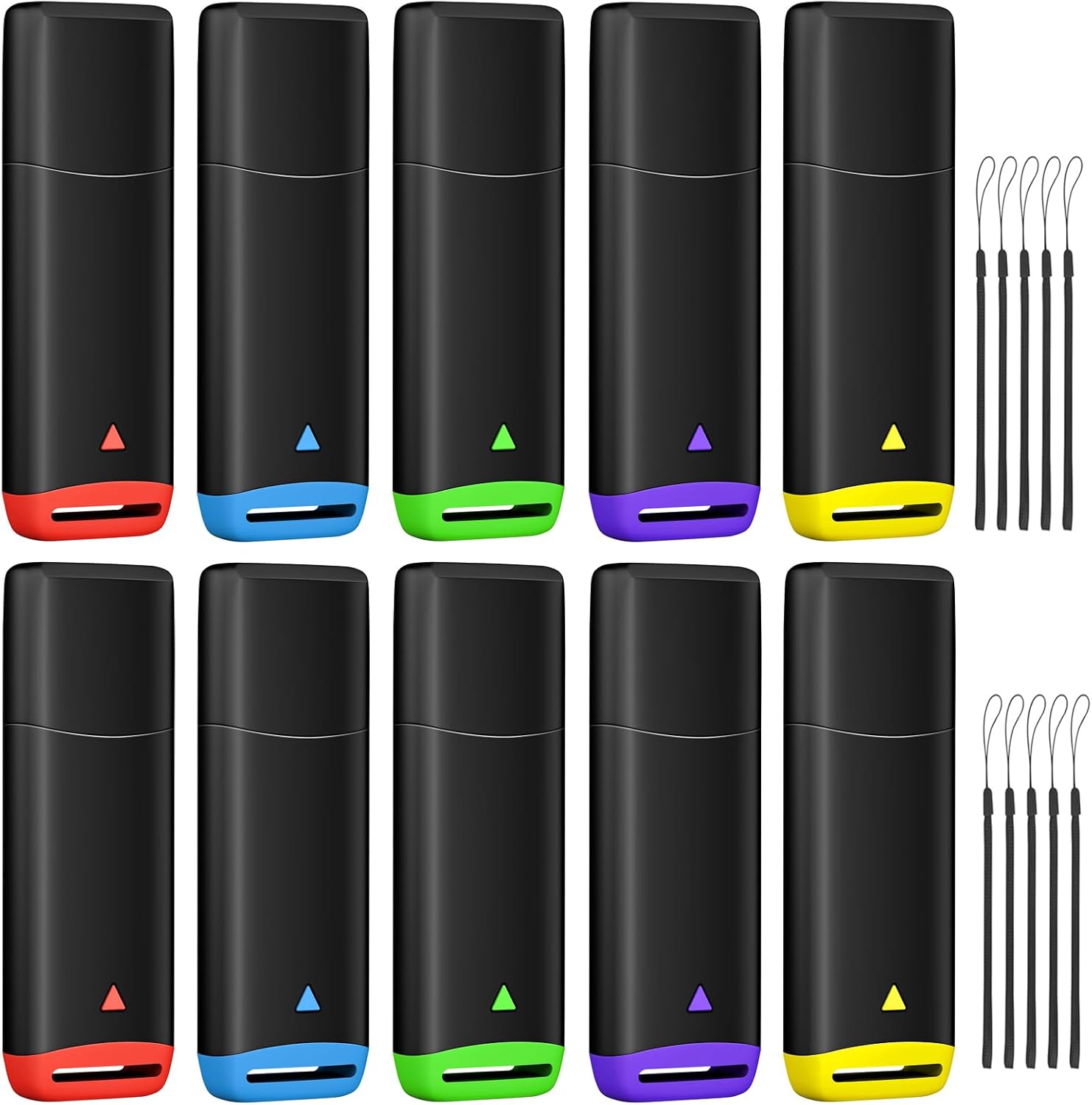 - What are you Get: 2GB USB drive 10 pack (mixed colors: blue yellow red purple green) and black lanyards. Note: The default format of the USB 2GB flash drive is FAT