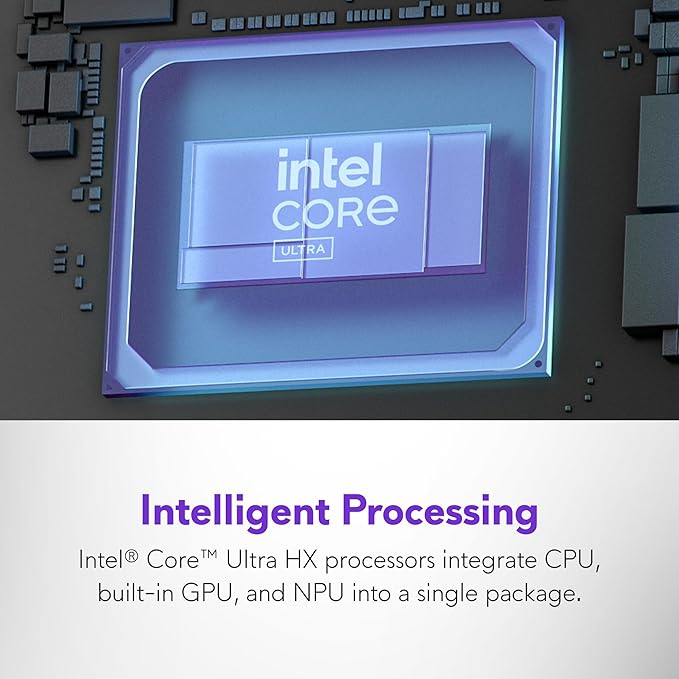 - Intelligent processing: Intel Core Ultra HX processors integrate CPU, built-in GPU, and NPU into a single package designed for AI acceleration and balanced performance across your favorite things to do.