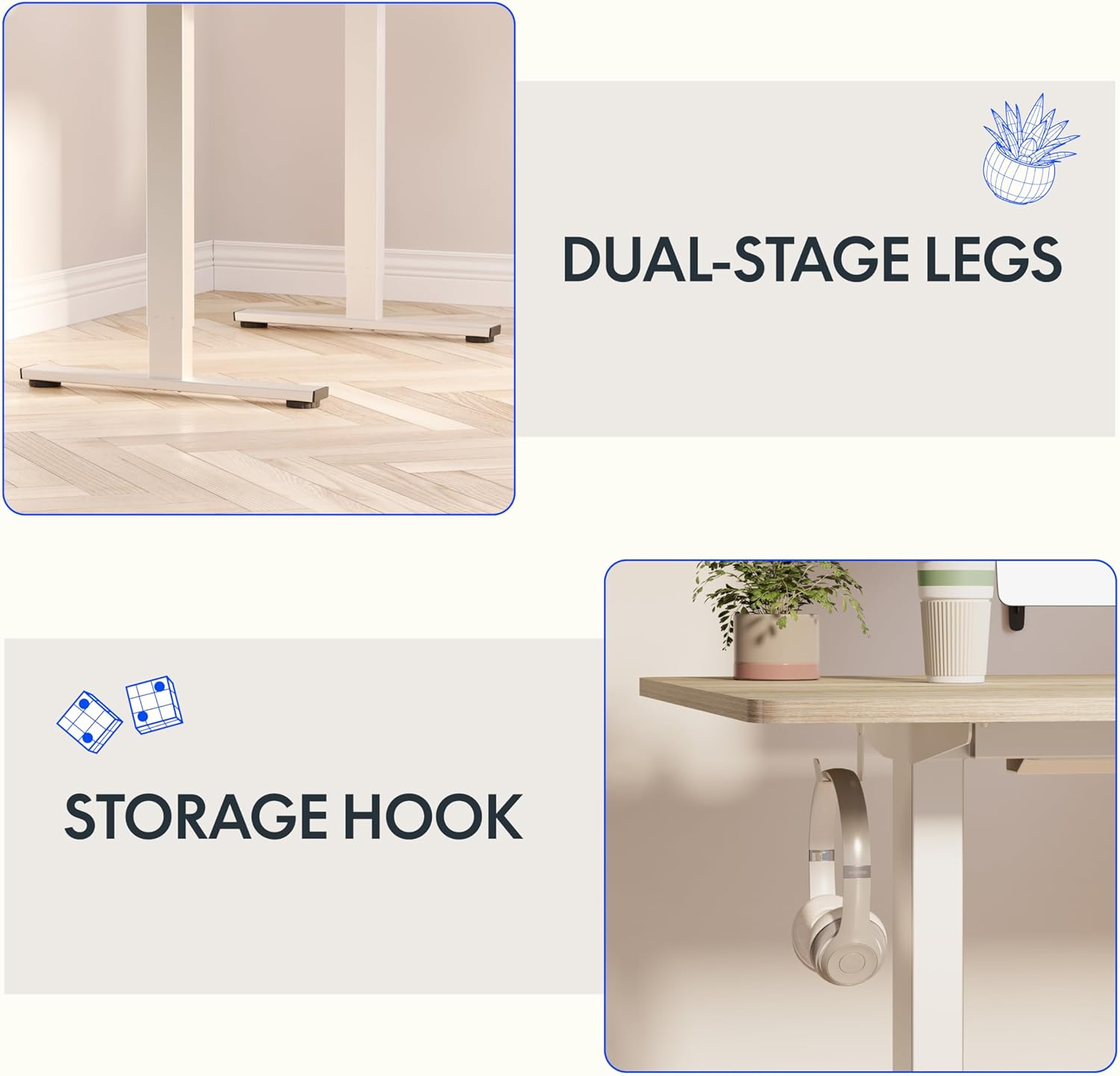 - 4 MEMORY PRESETS: Easily store and recall different height settings with our multifunctional memory system. Effortlessly switch between sitting and standing to reduce the risk of health issues like back and neck pain caused by prolonged sitting.