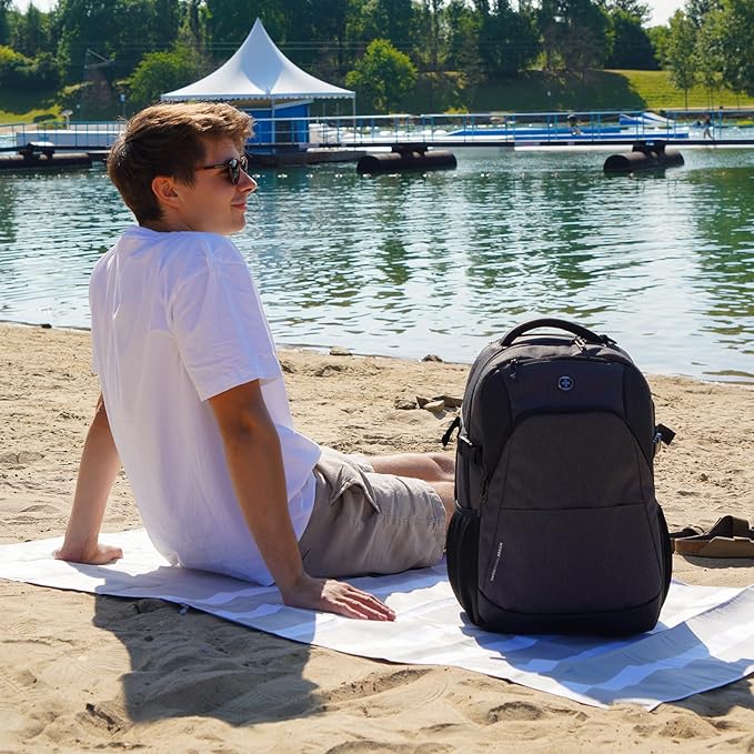 Swissdigital Design Travel Laptop Backpack for Men and Women, 35L Expandable Large College Backpack with USB Charging Port for Fits 17 Inch Notebook, Grey | ANDWIL PRO
