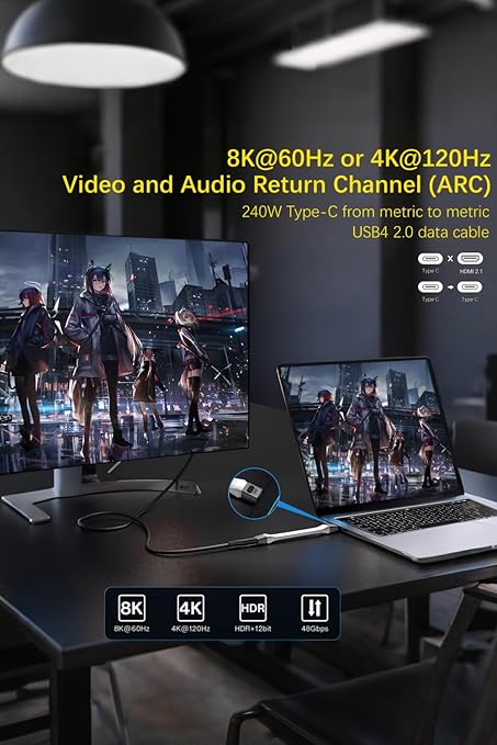 - Featuring 16K/8K high-definition video output - This Thunderbolt 5 cable supports 16K@60Hz/8K@120Hz resolution, delivering a detailed and high-definition visual experience. It is ideal for graphic design, video editing, gaming, video conferencing, and other applications that require superior high-definition images.