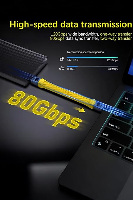 - 80Gbps Short USB C to USB C flexible flat cable - This short Thunderbolt 5 cable offers 80Gbps bidirectional data transfer and supports up to 120Gbps unidirectional transfer, which is three times faster than Thunderbolt 4/3 technology (40Gbps bandwidth). USB 4 Gen 3 cables can transfer a 10GB file in one second, making it easy to transfer data sets and UHD videos/photos.