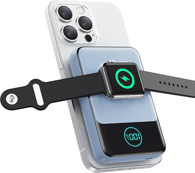 - 【Magnetic Wireless Portable Charger for Apple】This wireless magnetic portable charger compatible with MagSafe Magnetic case, iPhone 16/16Plus/16Pro Max/15/15 Plus/15 Pro/15 Pro Max/14/14 Plus/14 Pro/14 Pro Max/13/13mini/13Pro/13Pro Max/12/12mini/12Pro/12Pro Max, Apple Watch 10/9/8/7/6/5/4/3/2/1/SE 1/SE2/Ultra /Ultra 2 and Airpods 2/3/Pro/Pro 2. (Note: Please use Mag-Safe phone case or without case for wireless charging)
