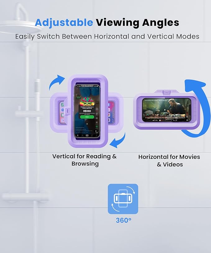 - 100% Waterproof Protection: We've completely redesigned the product structure with advanced sealing technology to ensure your phone remains untouched by water during showers. Whether you're bathing, washing, or simply using your phone in the bathroom, this shower phone mount case offers unmatched waterproof protection
