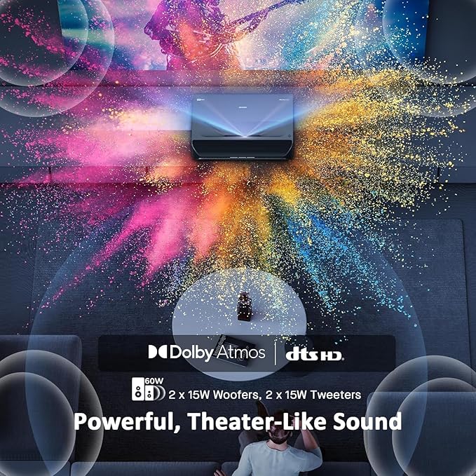 NexiGo Aurora Pro 4K Laser TV, with 100" Fresnel ALR Screen (Latest Version), Factory Calibrated Color Accuracy, 2400 Lumens, for Home Theater and Daylight Use, Dolby Vision & Atoms