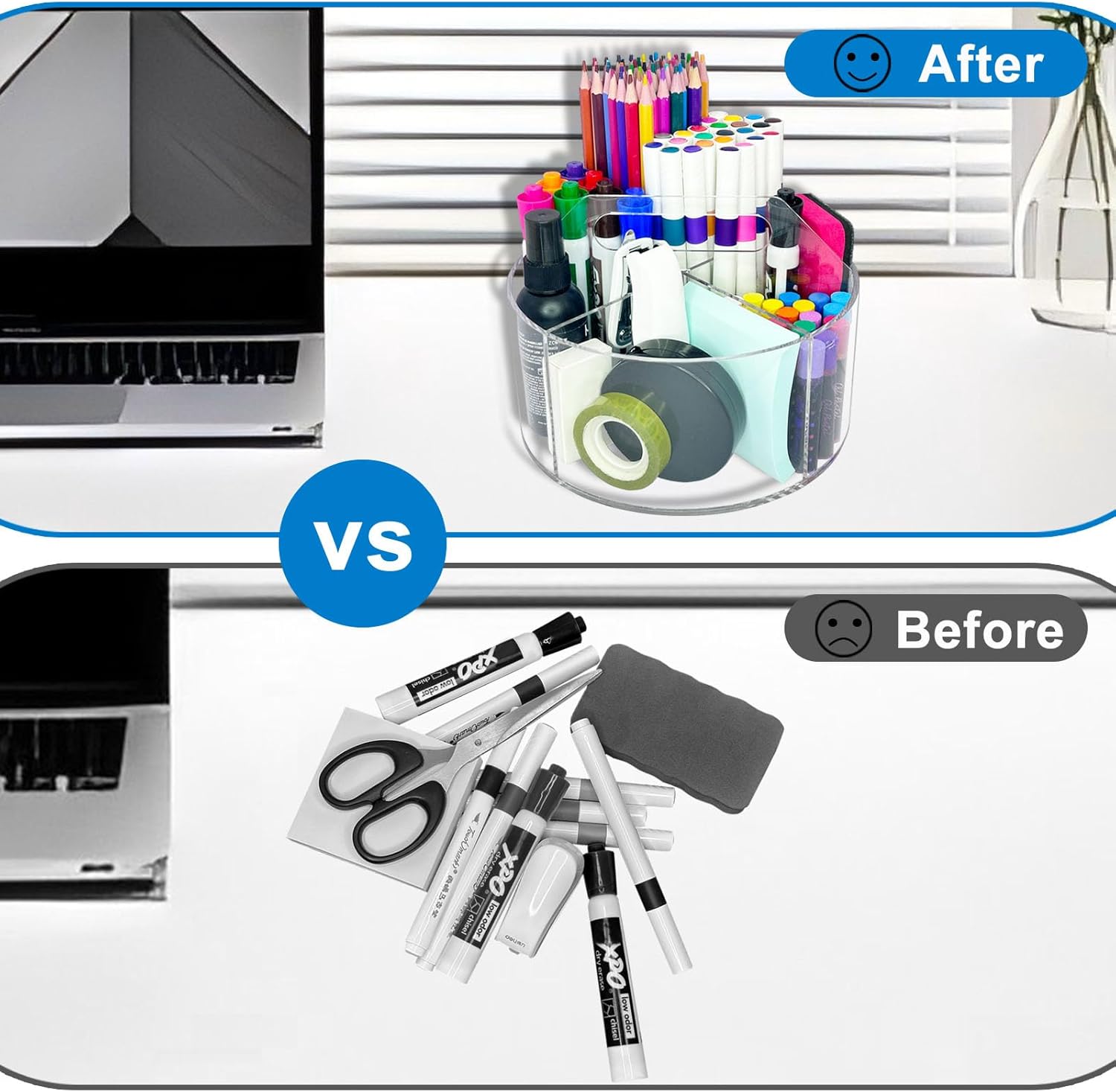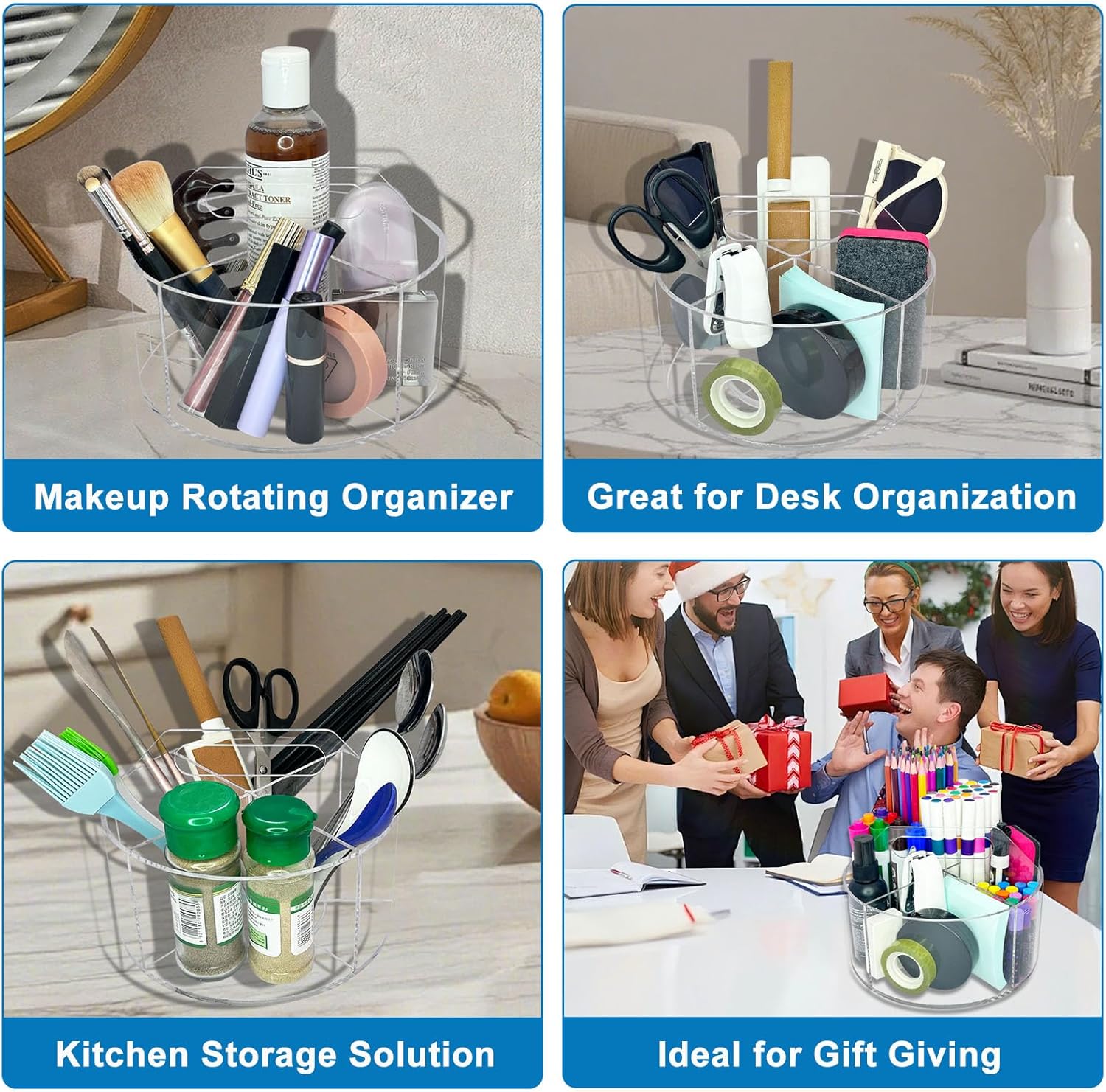 - 【Multipurpose Desktop Organizer】This transparent rotating desktop organizer is suitable for schools, office desktops, classroom podiums, art studios, homes, bathroom vanities, bedrooms, living rooms, kitchens, and any other places that require it.