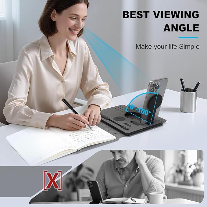 - 【Professional and Versatile】The travel journal is designed for those who appreciate quality and functionality. With features like a book light, cell phone stand, and Apple Watch charging station, this travel journal is perfect for professionals looking to stay organized and efficient in their daily tasks