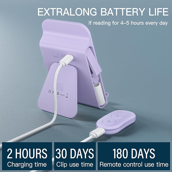 - Easy Operation:The page turner does not require a Bluetooth or WiFi connection.Press and hold the button on the stand for 1 seconds, Then the blue light is steady on, press any key of the remote control. At this time,the blue indicator light on the receiver flashes to indicate successful matching. Then clip the receiver onto the screen and you can use the remote control to flip pages freely,It supports page forward and backward