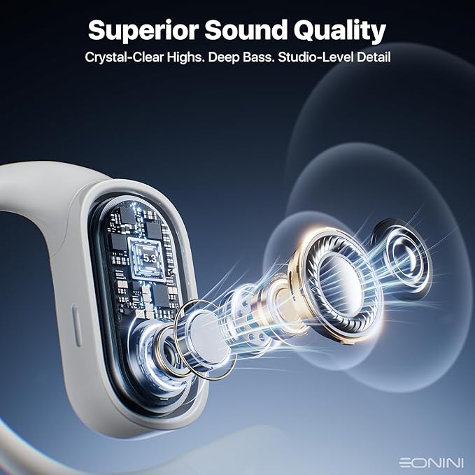 - ENC Mic for Clear Calls + Bluetooth 5.3: These open-ear wireless earphones feature an ENC noise cancellation microphone that reduces ambient noise for crystal-clear calls. With Bluetooth 5.3, enjoy fast pairing, stable connections, and smooth switching between your iPhone, iPad, laptops, and Android devices.